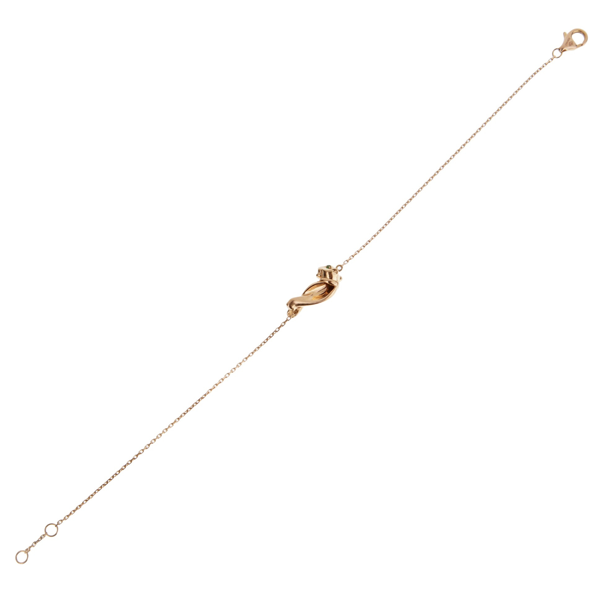 The panther's head is adorned with two vivid green tsavorite garnet eyes that add a captivating, feline intensity to the piece, a hallmark of Carthttier?¡¥s attention to detail and luxury craftsmanship. The charm is gracefully affixed to a delicate rose gold chain, offering a lightweight and comfortable wear that drapes elegantly on the wrist.