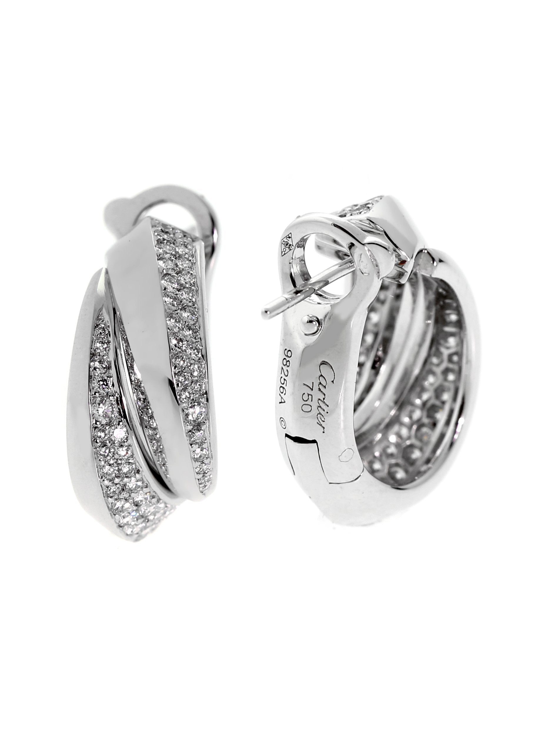 A chic pair of Carthttier earrings from the Panthere collection featuring pave set round brilliant cut diamonds set in 18k white gold.