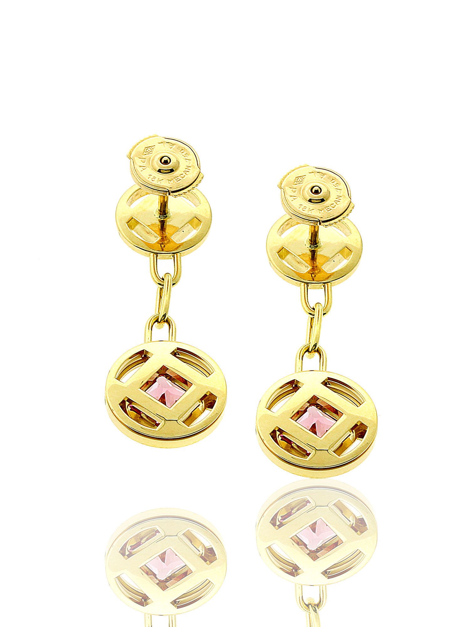 Thanks to a truly masterful use of visual contrasts, these 18k Yellow Gold Pasha Earrings by Carthttier are simply stunning in all the best ways. The gorgeous Pink Sapphires are a sight to behold unto themselves, but when paired with the incandescent Diamonds and the smooth Yellow Gold tones around them, the effect is downright hypnotic. Highly recommended!