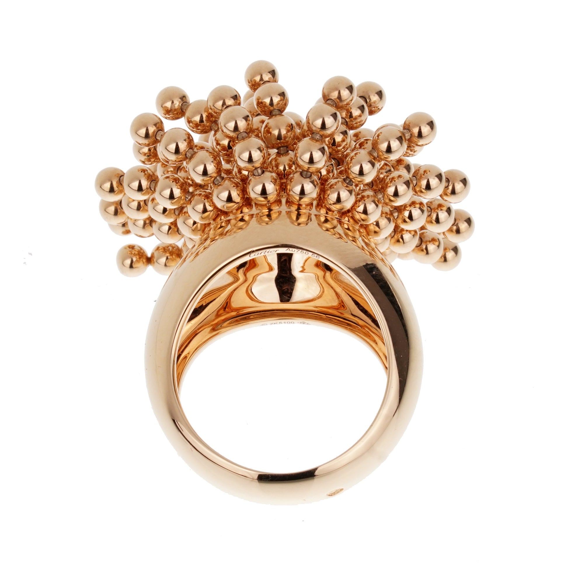 Each sphere is seamlessly integrated into the design, showcasing Carthttier?¡¥s precision and attention to detail. The spheres appear to be delicately suspended, adding a sense of lightness and fluidity to the bold composition. The dynamic arrangement evokes a sense of motion and liveliness, making the ring feel both contemporary and timeless.