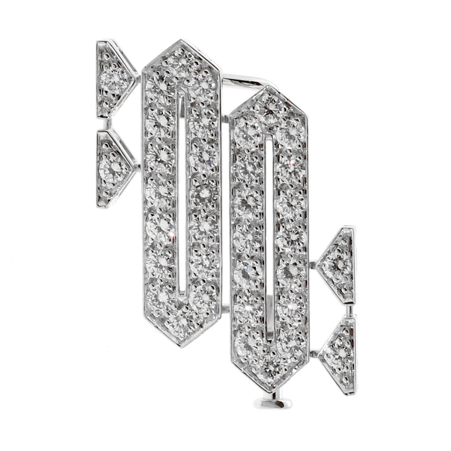A fabulous Carthttier platinum estate brooch set with 1.35ct of the finest Carthttier round diamonds set in platinum. This Carthttier diamond platinum brooch has a striking zig zag design and would be appealing with both casual and formal wear.