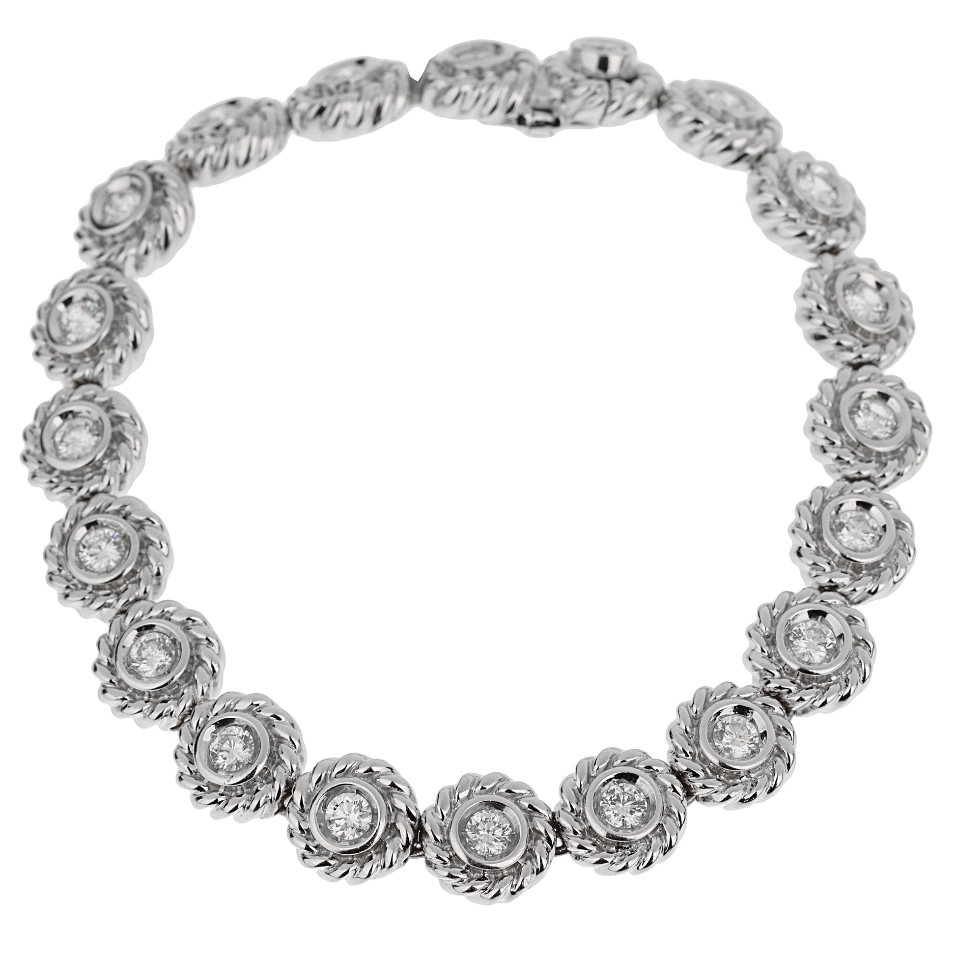 Chathtnel Vintage Camellia 18k White Gold Diamond Tennis Bracelet
