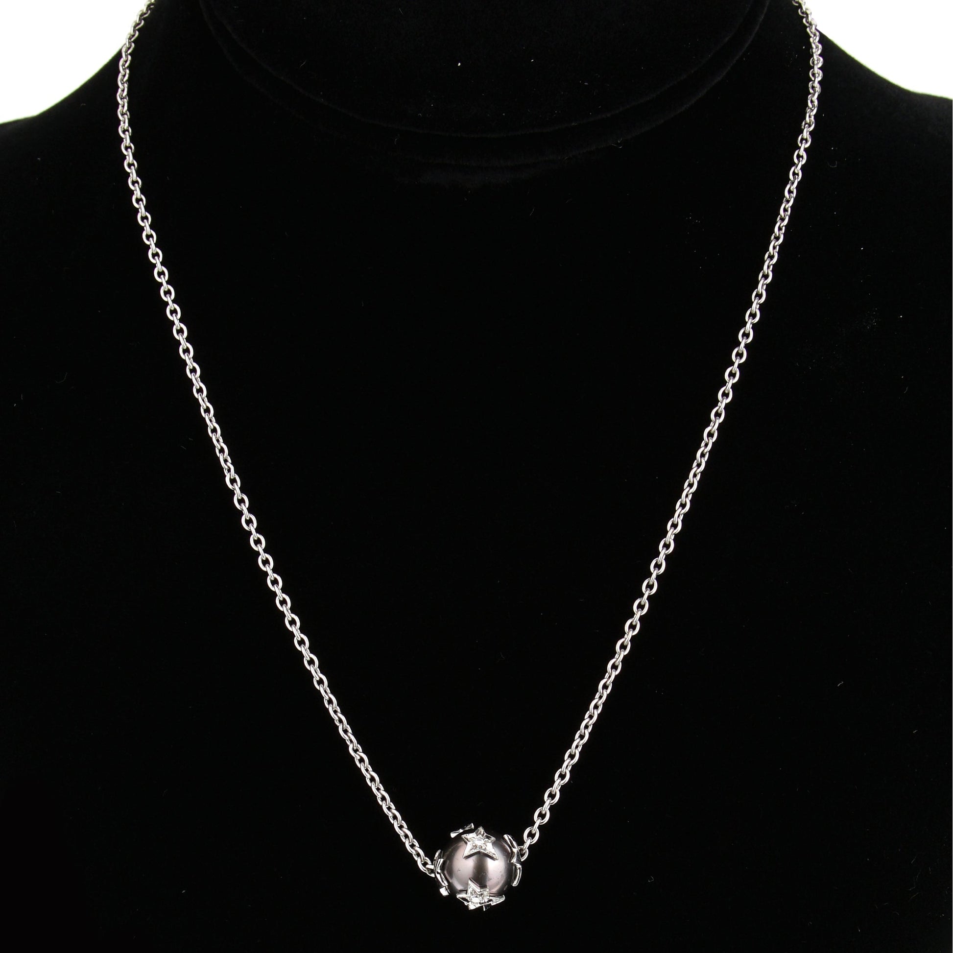 Chathtnel Comete Pearl Diamond 18k White Gold Vintage Necklace