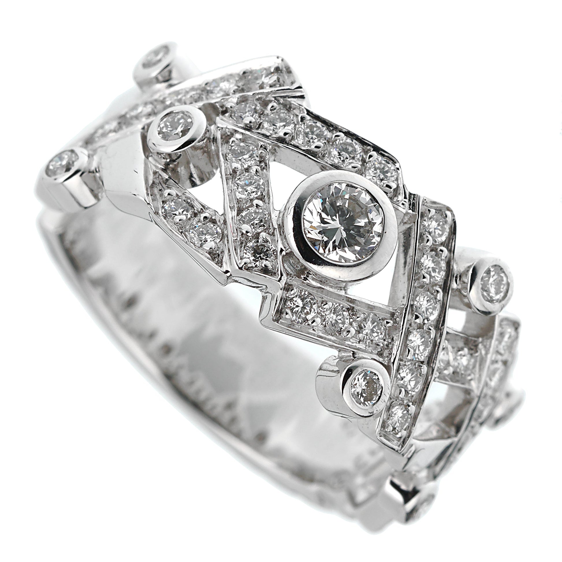 Crafted in lustrous white gold, this ring serves as a dazzling canvas for approximately 0.90 carats of exquisite diamonds. Each diamond has been carefully selected for its exceptional quality, radiating a mesmerizing brilliance that catches the light with every movement. The diamonds are meticulously set in a pattern reminiscent of affectionate embraces and tender kisses, symbolizing love and devotion.