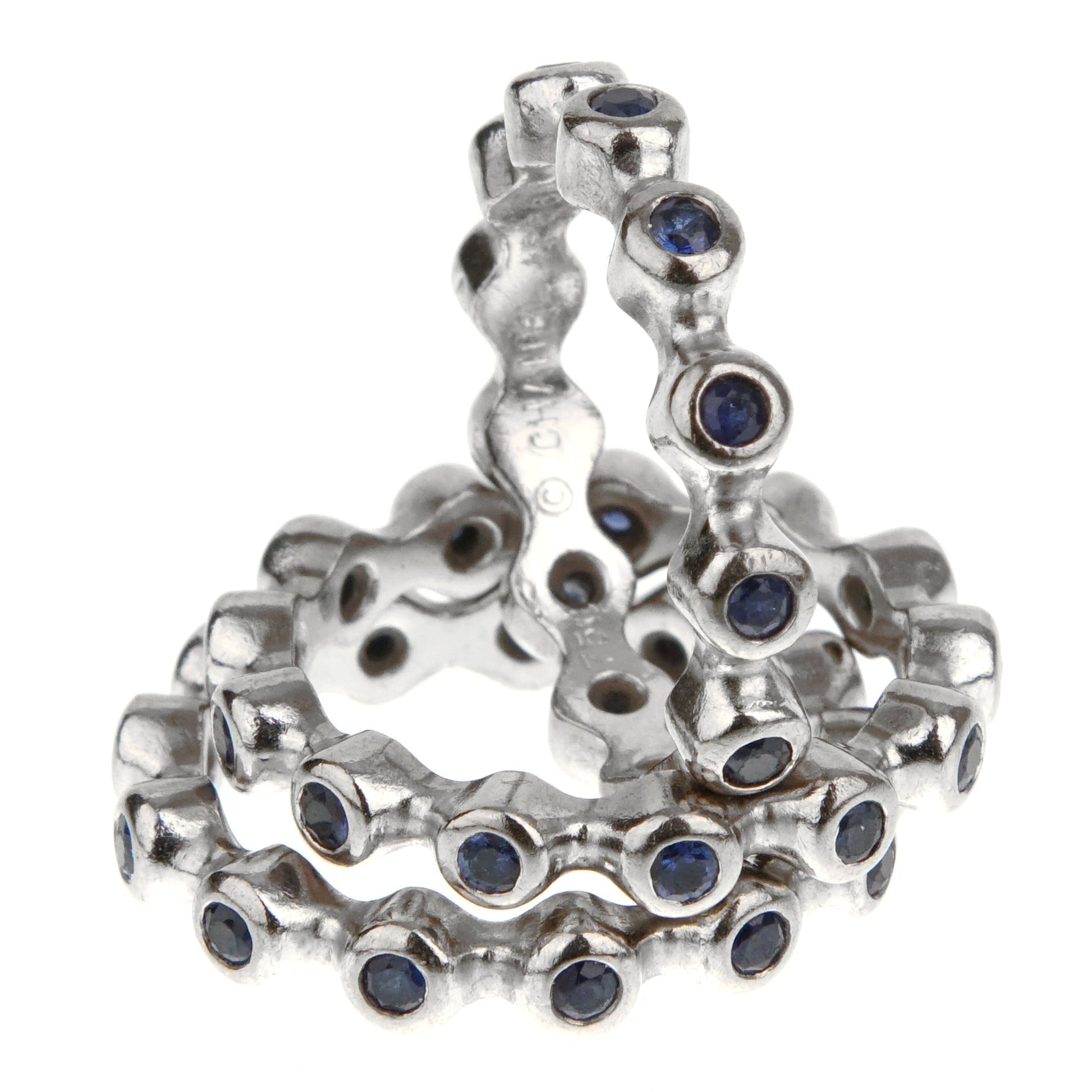Chathtnel Sapphire Eternity 18k White Gold Triple Ring Suite