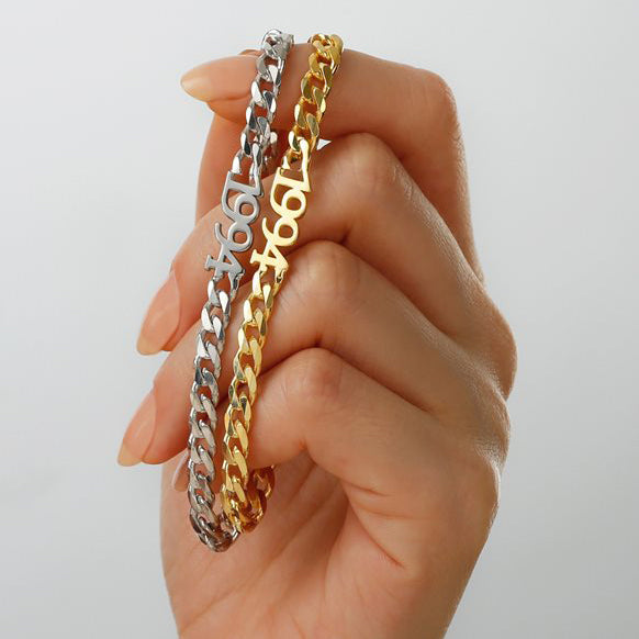 Couple's Bracelet with Custom Year 5mm Cuban Chain