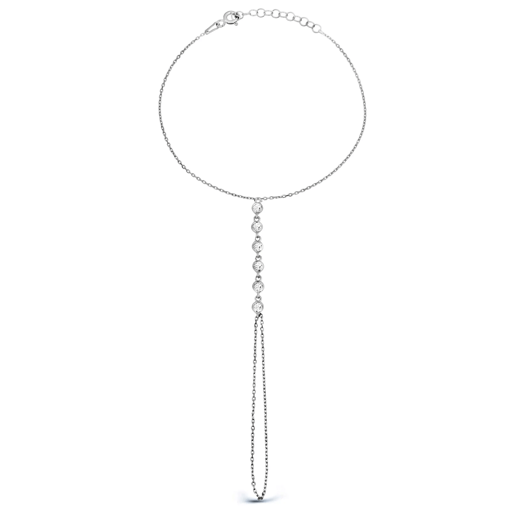 Crystal Hand Chain Sterling Silver Slave Bracelet