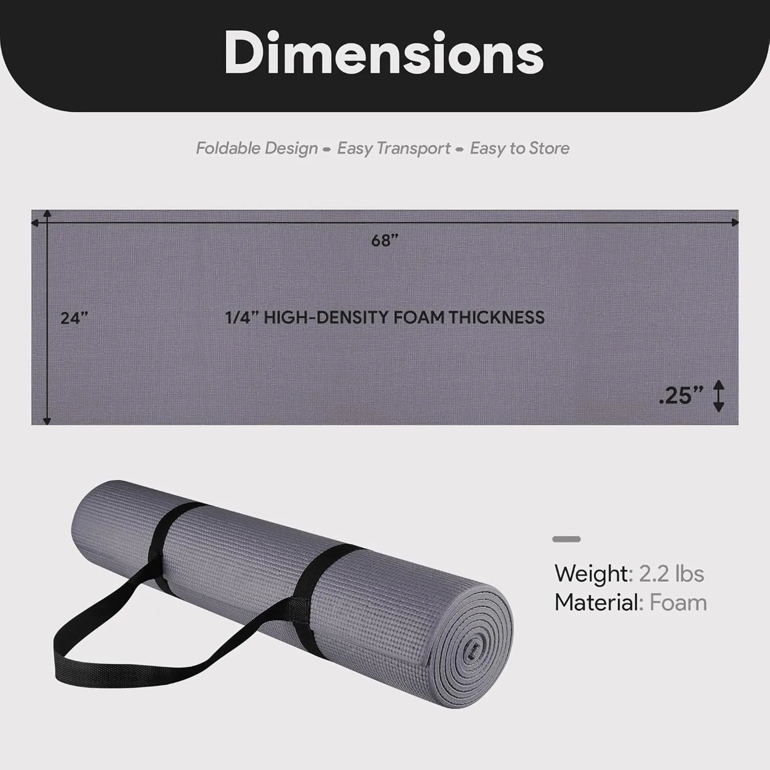 All Purpose 1/4-Inch Exercise Yoga Mat with Carrying Strap