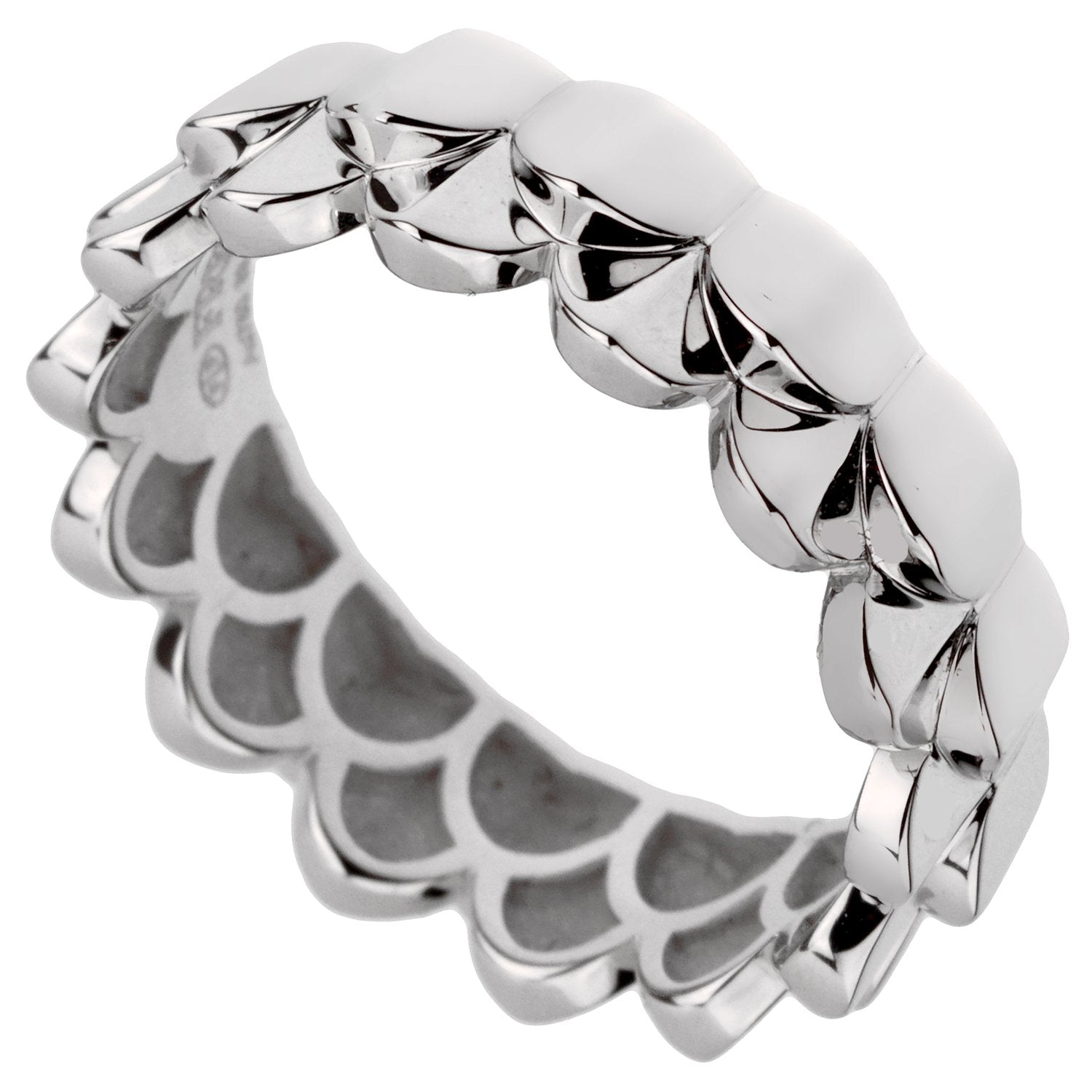 Masterfully crafted in luminous 18K white gold, the band ring showcases a refined allure that only adds to its universal appeal. The cool gleam of the white gold sets a perfect stage for the distinctive double arc design that is a representation of modern design aesthetics.