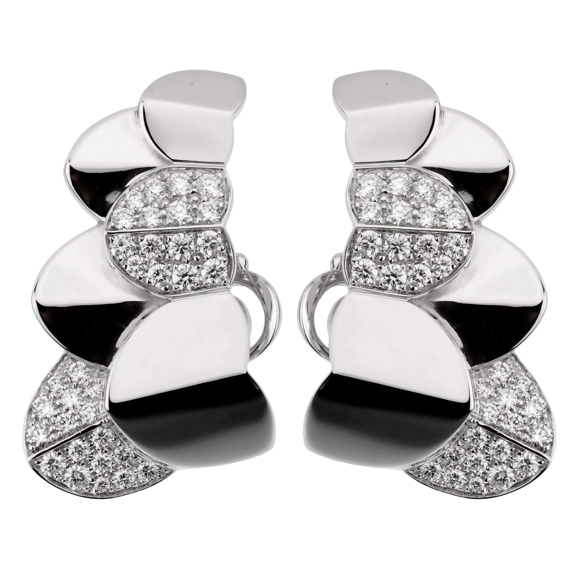 Frthted of Paris Double Arc 18k White Gold Diamond Earrings