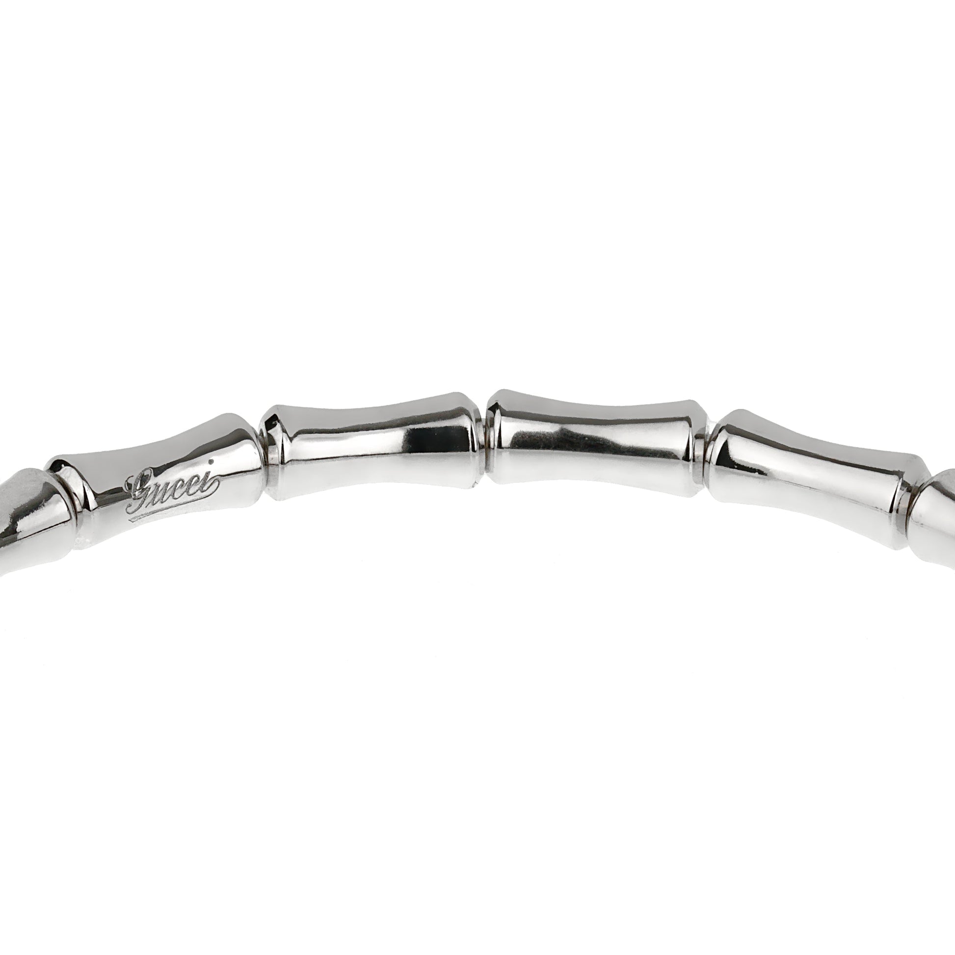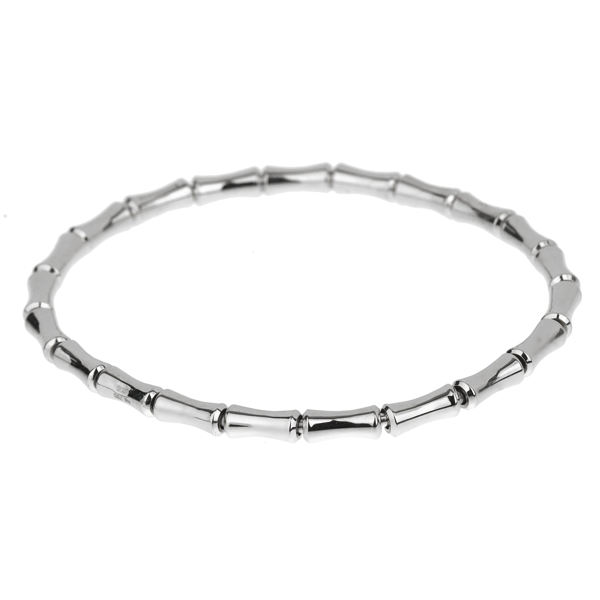 A Guthtcci showcasing the iconic Bamboo motif in 18k white gold, the bracelet features a stretchable core for a seamless look and perfect for everyday wear.