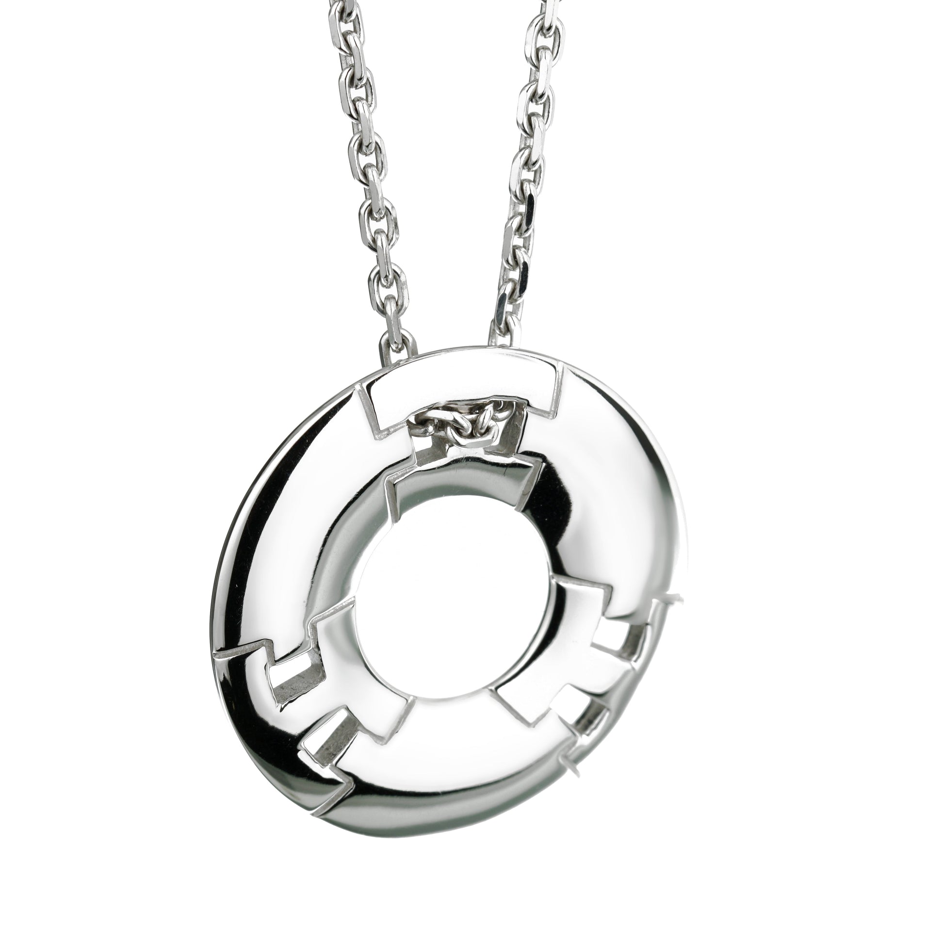 One of the most significant aspects of this necklace is its versatility. The simplicity of the circular design combined with the elegance of the white gold chain makes it suitable for both day and evening wear. It can be a subtle addition to a professional daytime outfit or a sophisticated accent to an evening gown.