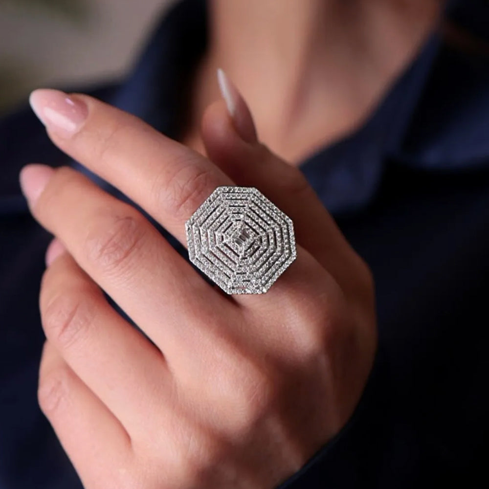 CZ Cluster Ring in 18k Gold Plated Sterling Silver
