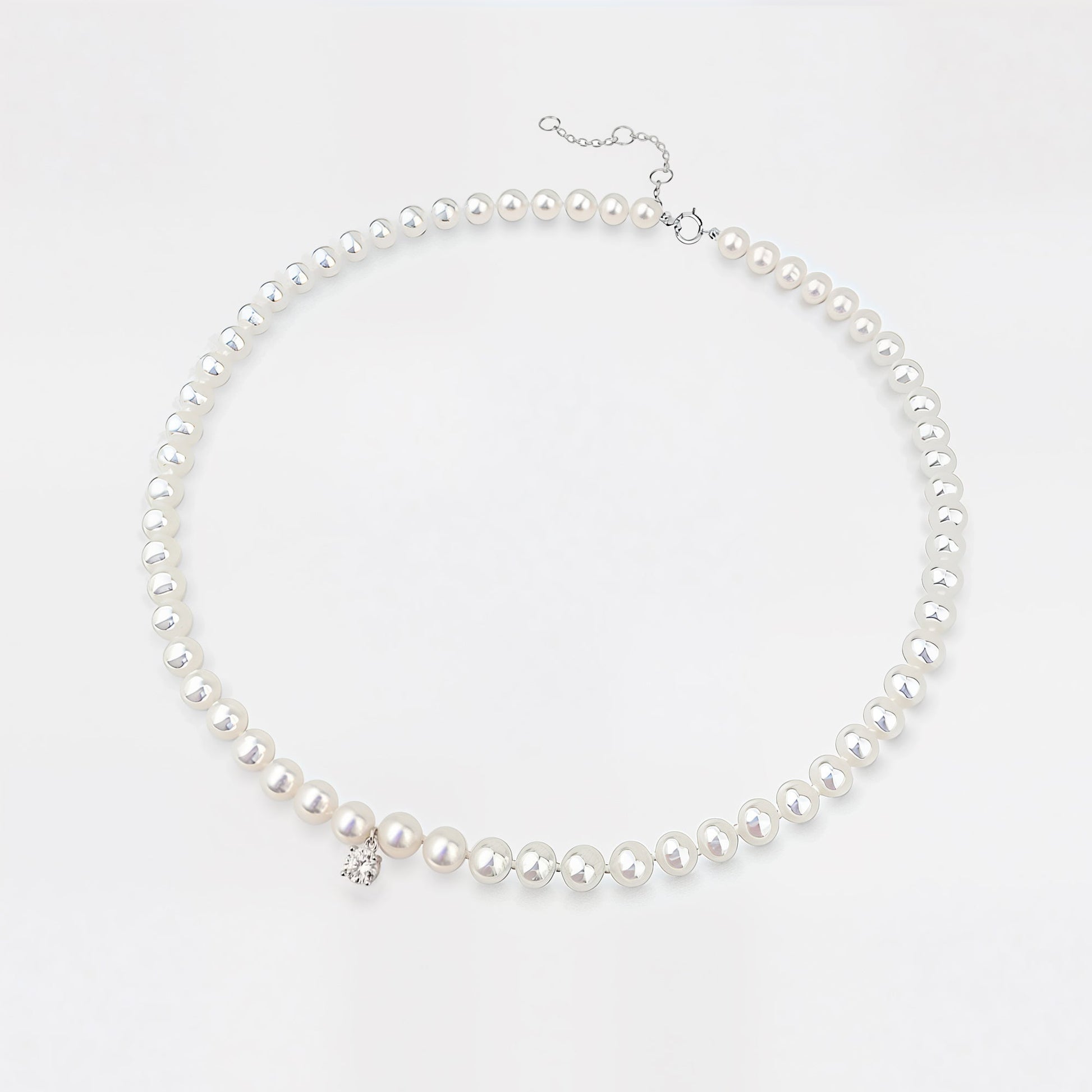 Pearl Necklace Choker with Solitaire CZ Diamond