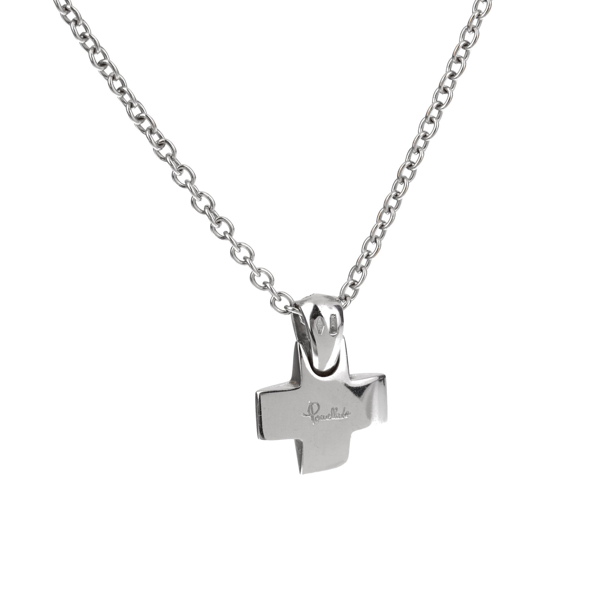The cross pendant itself is a marvel of design, with clean lines and a balanced structure that exudes both strength and grace. The pav¡§|-set diamonds cover the front of the cross, providing a brilliant and luxurious appearance. The back of the pendant is equally well-crafted, showcasing Pothtmellato's dedication to creating pieces that are as beautiful from behind as they are from the front.