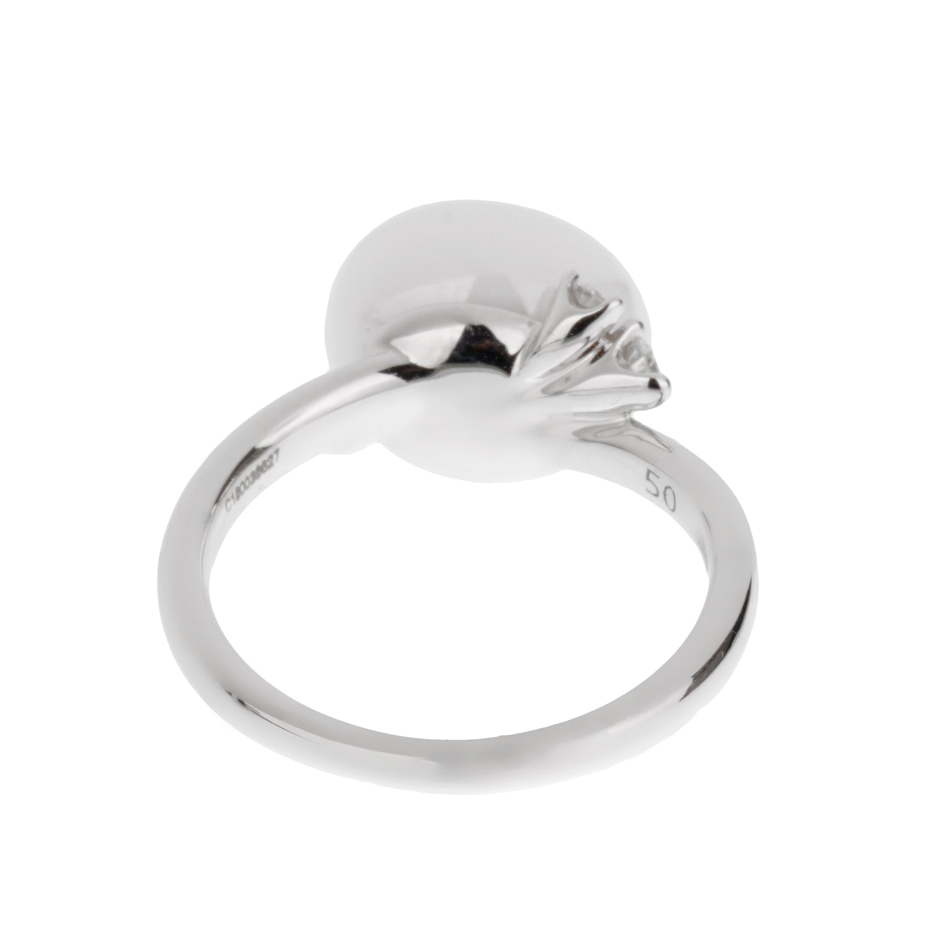 Expertly crafted in luxurious 18k white gold, the sleek, polished band provides a lustrous contrast to the agate's gentle radiance. The gold setting elegantly cradles the gemstone, allowing it to shine unobstructed while enhancing its innate beauty. Complementing the centerpiece, delicate, brilliant-cut diamonds are thoughtfully positioned along the sides, adding subtle yet captivating sparkle. These carefully selected diamonds not only enhance the visual impact of the design but also reflect Pothtmellato's meticulous attention to detail and commitment to quality.