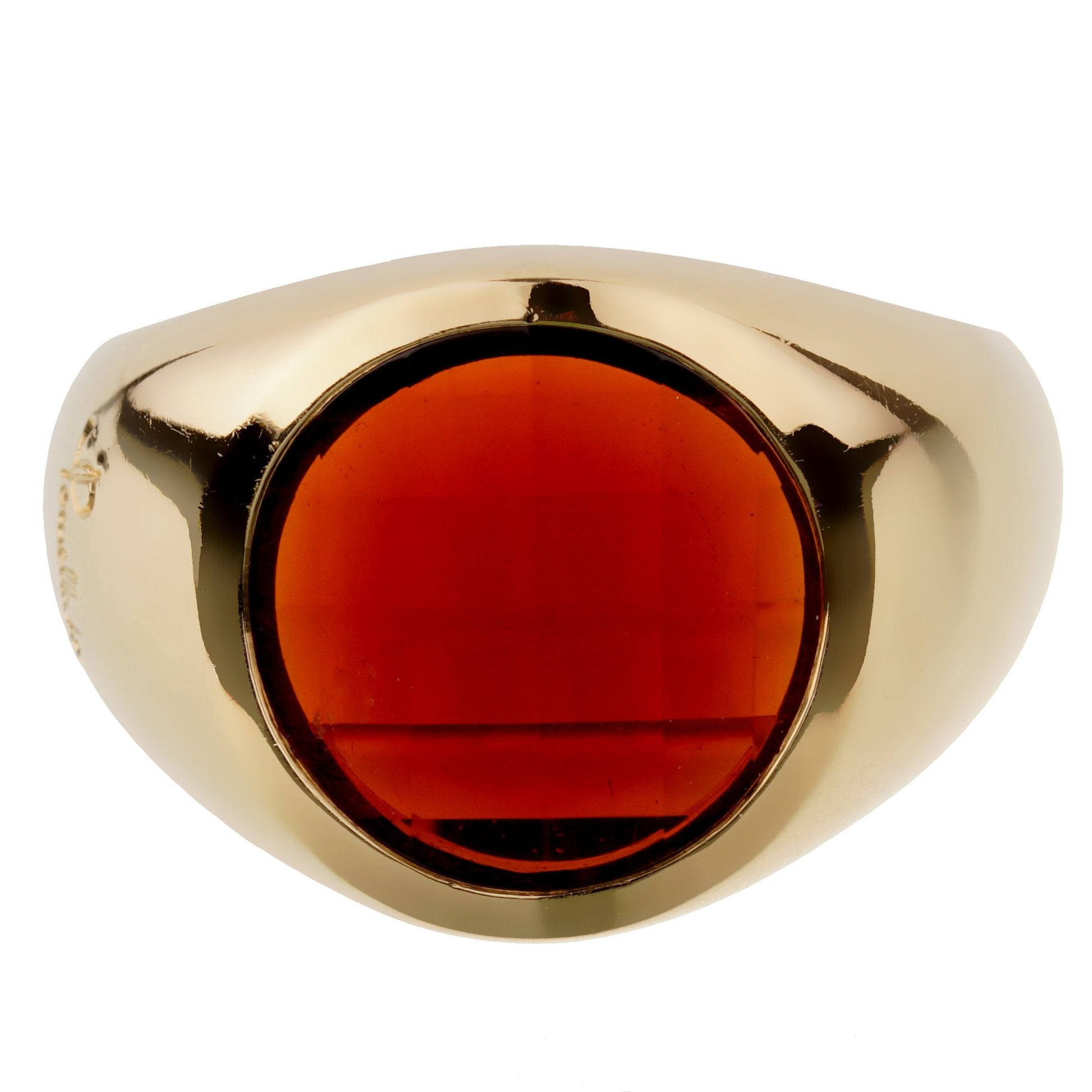 The Pothtmellato Garnet Yellow Gold Cocktail Ring is a testament to the brand's dedication to exceptional craftsmanship and innovative design. This exquisite piece features a round step-cut garnet set in 18k yellow gold, exemplifying Pothtmellato's flair for combining vibrant gemstones with luxurious metals.