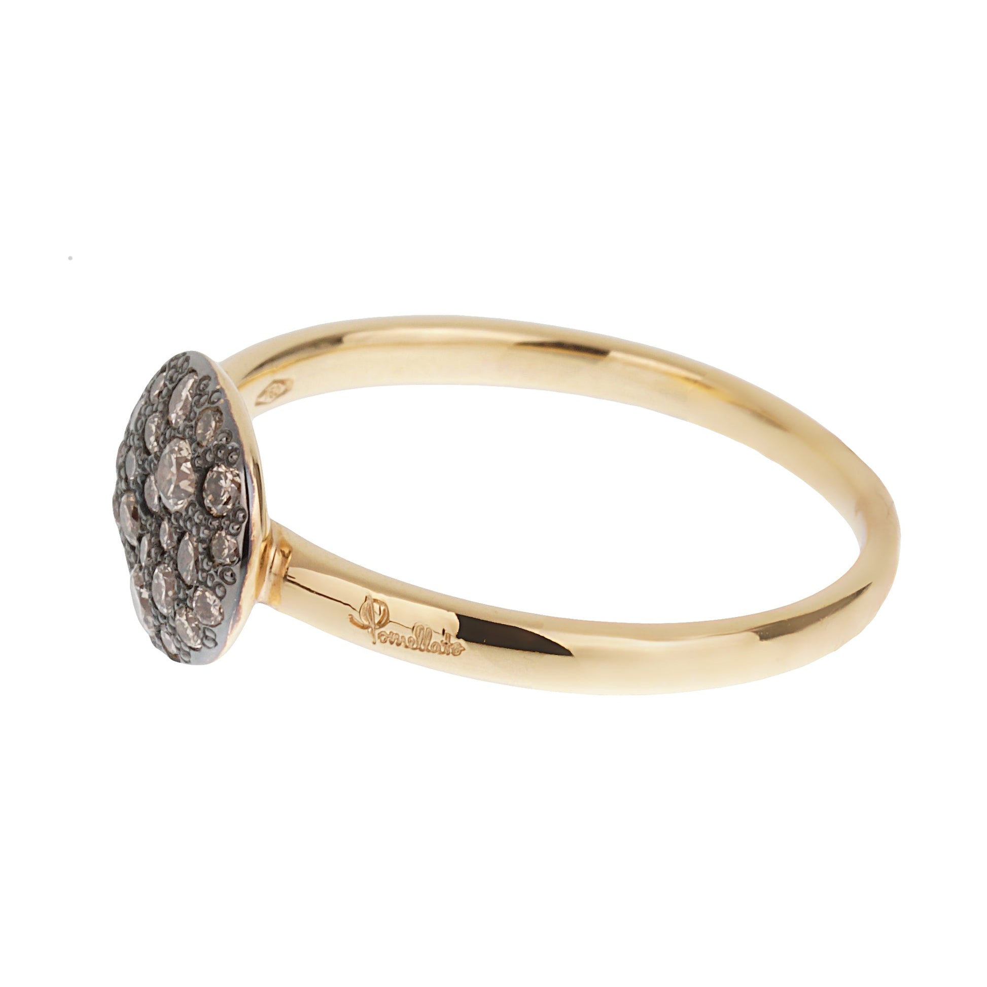 Inspired by the natural beauty of sun-kissed sands, the Pothtmellato Sabbia ring captures the essence of effortless elegance in a design that feels both grounded and glamorous. This ring is crafted in 18k rose gold, which brings a warm and radiant glow to the hand. At its center lies a gently domed circular disc, shimmering with a pave of fancy brown diamonds in various sizes.
