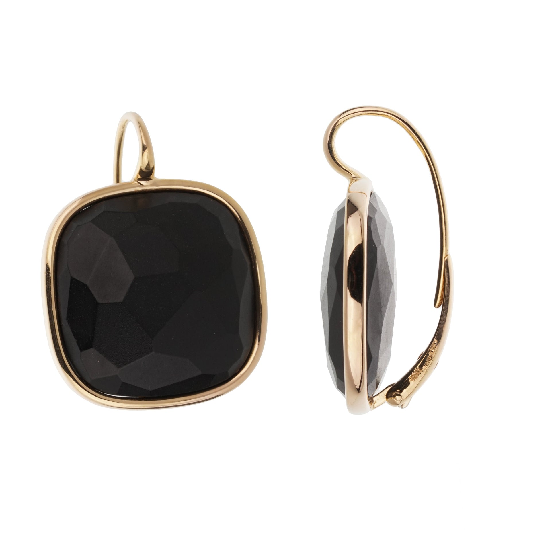 The design of these earrings is both timeless and contemporary, making them versatile enough to complement a wide variety of outfits and occasions. The sleek, square-cut jet stones are framed by a soft, rounded 18k rose gold bezel that adds a touch of refinement without overwhelming the stone?¡¥s natural beauty. The bezel?¡¥s smooth edges create a fluid transition between the stone and the gold, highlighting the elegance of both materials.