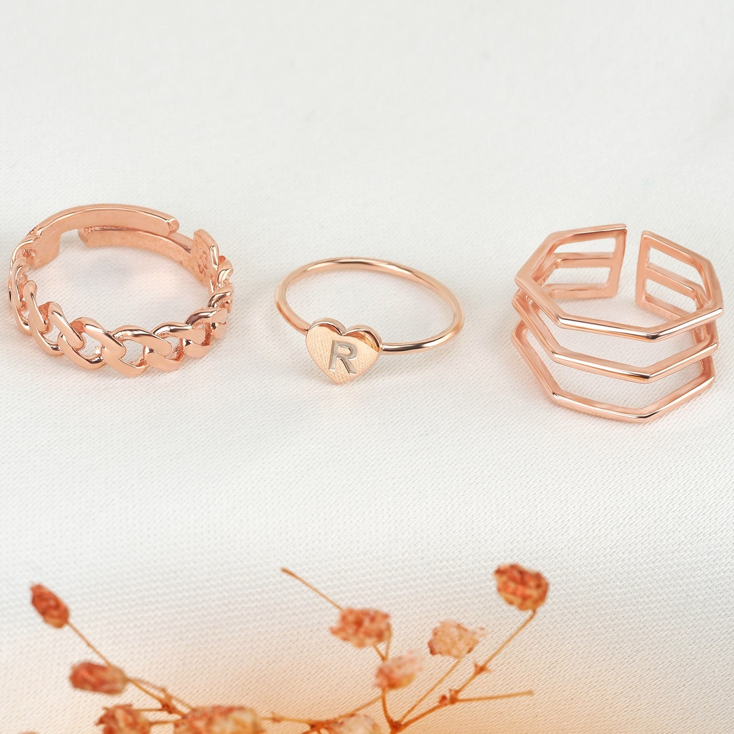Rose Gold Initial Ring Engraved Dainty Heart Band