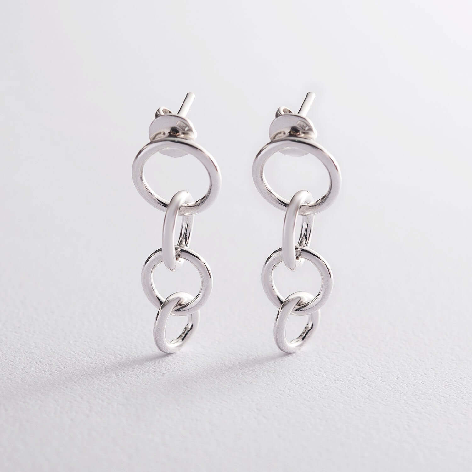 Round Link Studs Dangle Earrings 925 Silver Handmade Jewelry