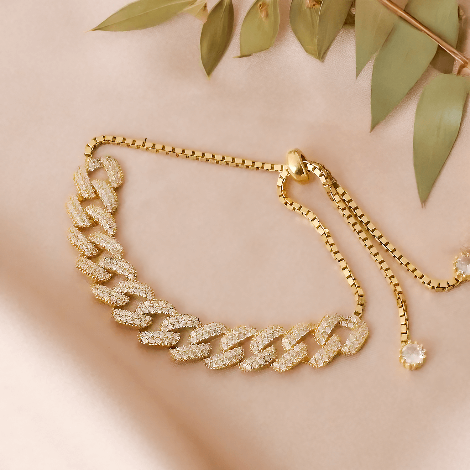 Stone Studded Cuban Link 925 Silver Chain Bracelet