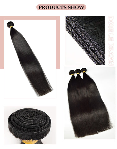Straight Hair Bundles Quality: Double Strong Weft, Tight And Neat Weft, Thick And Healthy End, No Shedding, No Tangles, No Lice, Soft And Full, Smooth And Silky Human Hair Bundles.