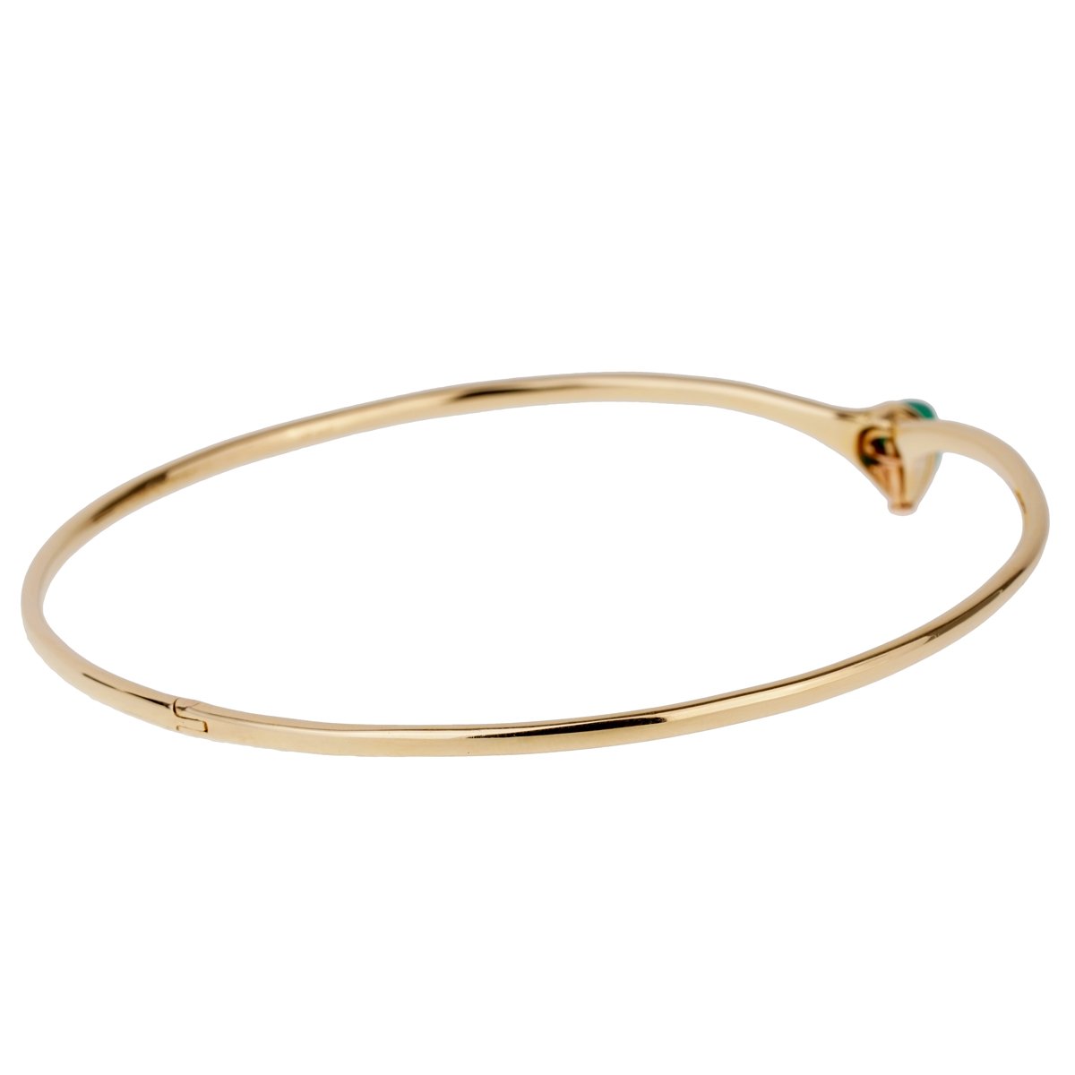 Vathtn Clthteef & Arpels' unparalleled craftsmanship and meticulous attention to detail are evident in every aspect of this mesmerizing piece. The smooth 18k yellow gold choker gently encircles the neck, providing a comfortable and secure fit while complementing the vibrant chrysoprase with its warm, radiant glow. The harmonious balance of color and texture in this design is a testament to the brand's enduring passion for creating innovative and enchanting jewelry that transcends time and trends.