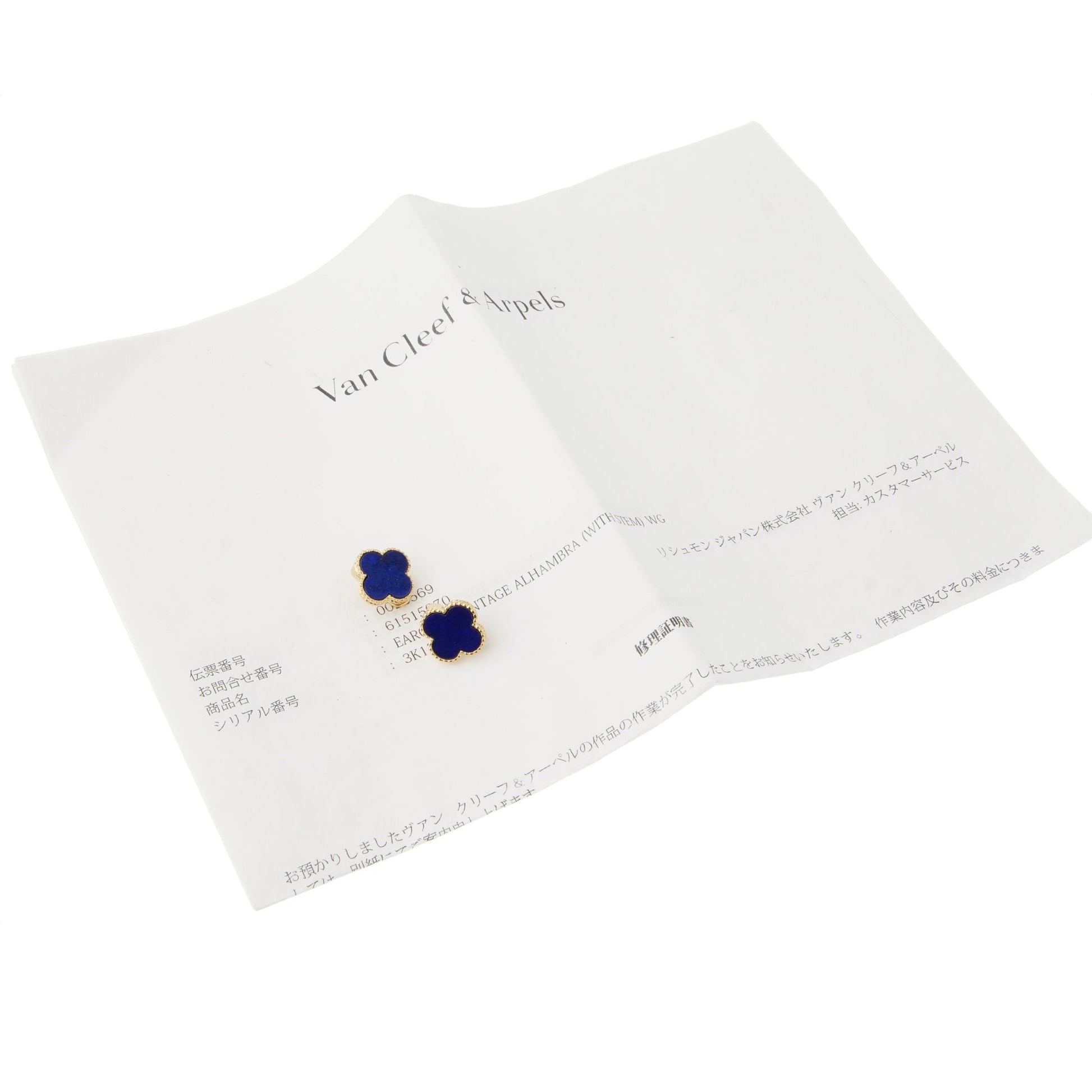 Vathtn Clthteef & Arpels Lapis Lazulli Vintage Alhambra Gold Earrings