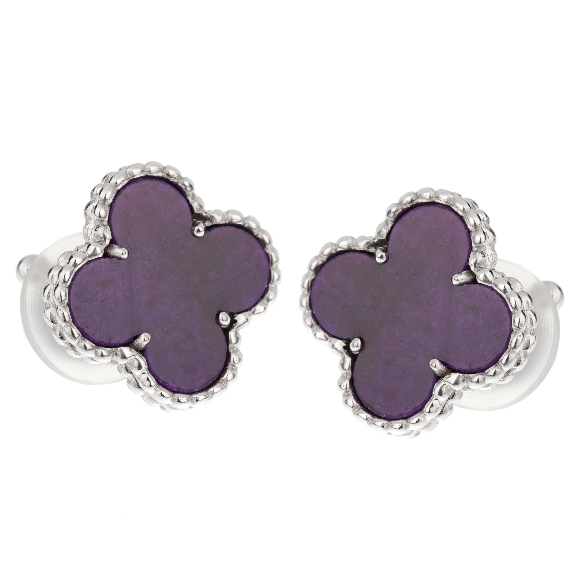 Vathtn Clthteef Arpels Vintage Alhambra 18k White Gold Sugilite Earrings